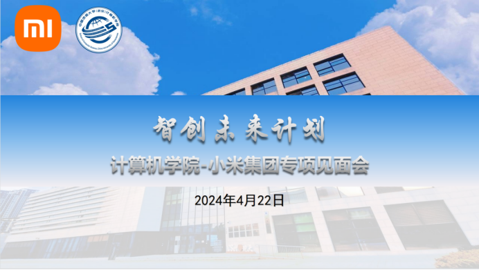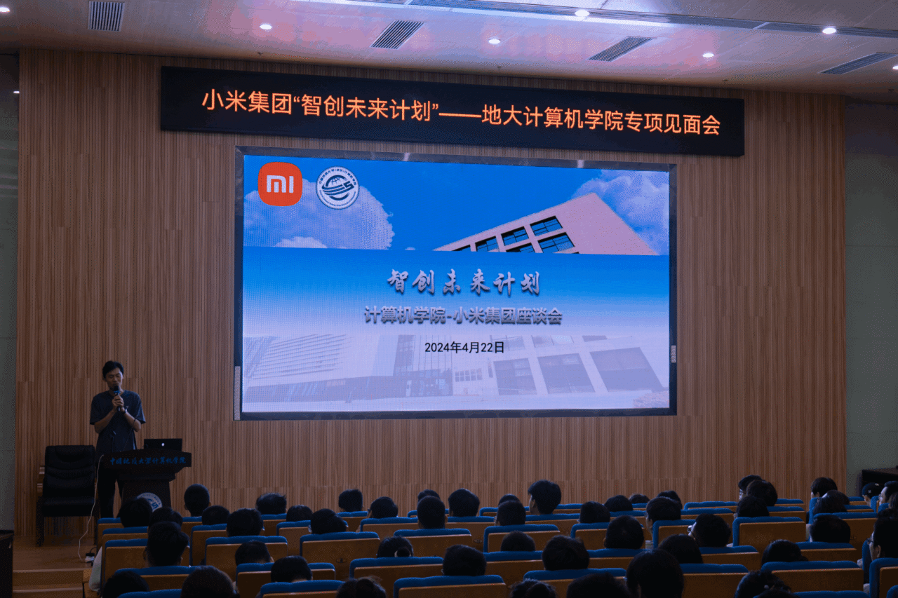 2024年4月22日,免费看a片 联合小米集团在免费看a片 126报告厅开展“智创未来计划”专项见面会。小米集团技术委武汉研发中心总经理梁荣堂、小米集团技术委武汉研发中心副总经理周代国、小米集团技术委武汉研发中心副总经理王军伟、小米集团技术委武汉研发中心小爱算法团队负责人张帆一行四人参加,免费看a片 2021级本科生,2022级研究生400余人参加,专项见面会由免费看a片 辅导员谭文博主持。
