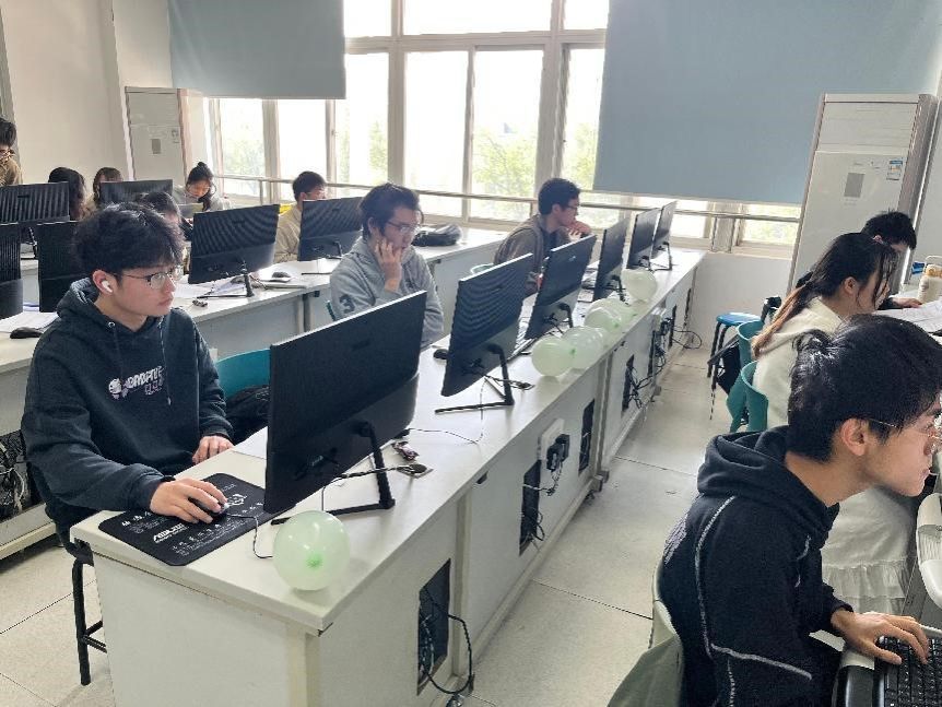 比赛于上午8时30分正式拉开帷幕,参赛选手们迅速进入竞技状态,他们双眼注视屏幕,专注于赛题。依照国际大学生程序设计竞赛(ICPC)的传统,每当参赛者正确解答一题,工作人员便会将一个气球粘贴在其电脑之上。比赛初始阶段,选手们迅速适应了比赛节奏,不断取得气球,整个机房顿时淹没在气球的海洋中。