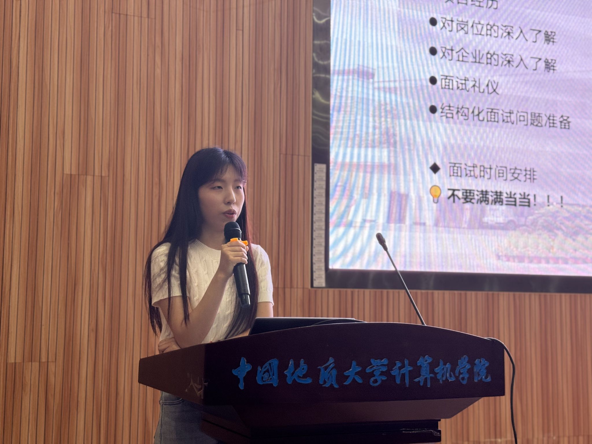 在问答环节,两位主讲人针对现场同学提问展开深度解答:范超凡建议研一聚焦科研夯实理论基础、研二集中投递实习,强调小厂实习也能积累核心能力,关键在于提炼技术思维;张如甜强调“项目深度>平台背景”,建议双非学生通过Kaggle竞赛、开源项目补充经历,面试中突出问题解决能力;针对银行笔试,指出需兼顾行测(逻辑推理、资料分析)与计算机基础知识(如网络安全、数据库),推荐粉笔APP专项训练。