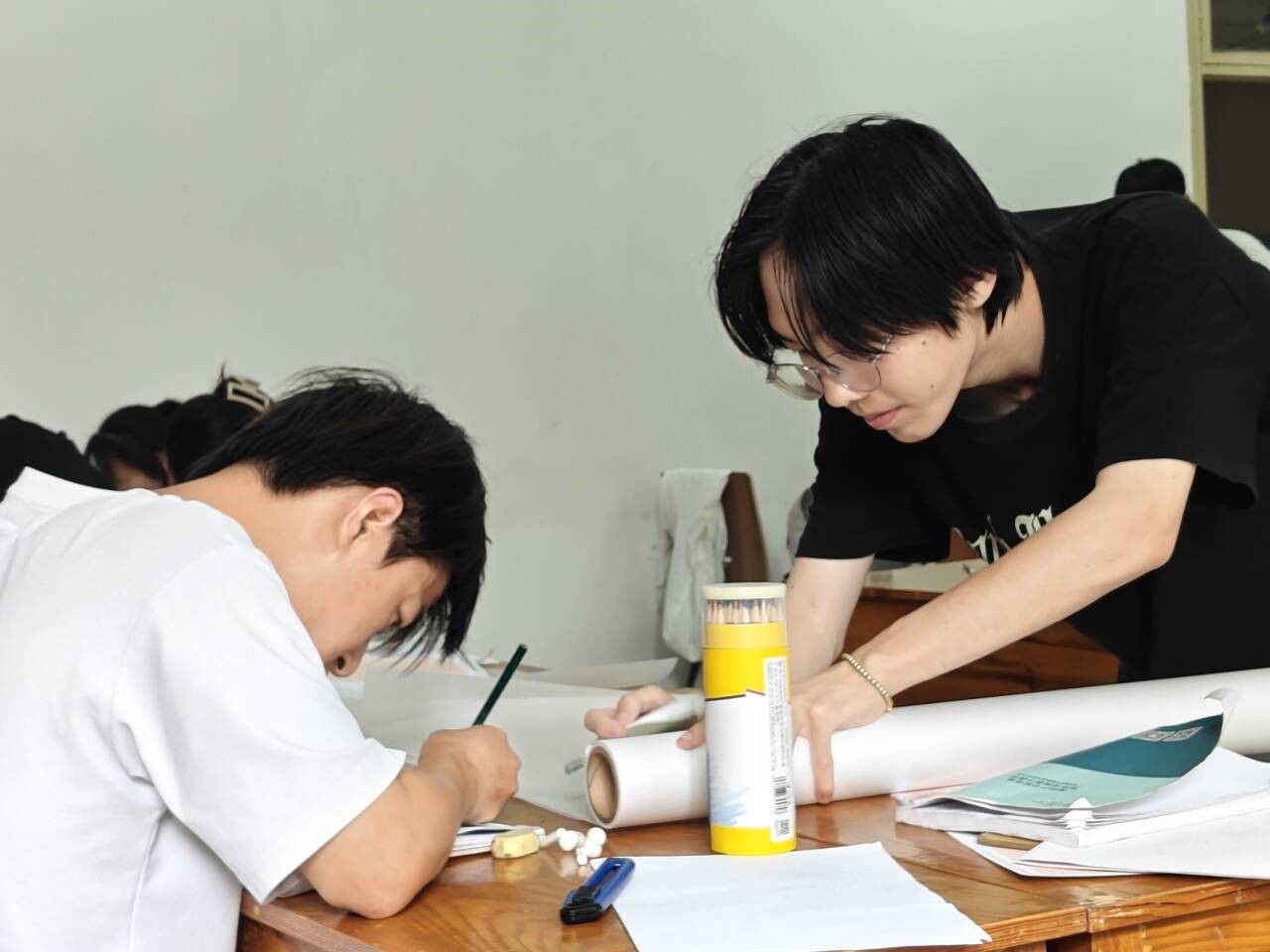 有的小组聚焦图件细节,用不同粗细的线条区分地质界线与路线轨迹,在关键分界点旁标注岩性名称与测量数据;有的小组则专注报告修改,对着导师此前提出的建议,补充地层演化分析,完善数据表格的格式规范。期间,张志庭老师、何珍文老师和董玉森老师穿梭于各小组之间,针对报告中的逻辑漏洞、图件里的标注误差耐心指导,“地质报告要像地层一样严谨,每一个数据都得经得起推敲”,老师的叮嘱让同学们更加注重细节。傍晚时分,不少小组完成了报告初稿与地质图终稿的整合,看着桌上厚厚一叠成果资料,大家脸上满是成就感——这些不仅是实习的作业,更是读懂地球密码的“钥匙”。