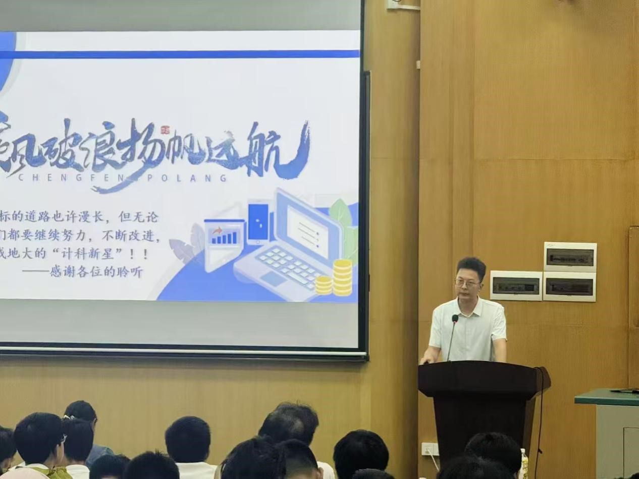 宣讲伊始,免费看a片 团委书记、双创专员王太茂老师结合专业特点为新生介绍了免费看a片 双创工作体系,并阐述了计科学子在数字时代的应为与可为。他希望以此次讲座为契机,能为广大同学种下一颗“种子”、指明一个方向、共创一个未来,鼓励同学们从大一开始参与科创活动,在实践中淬炼青春。