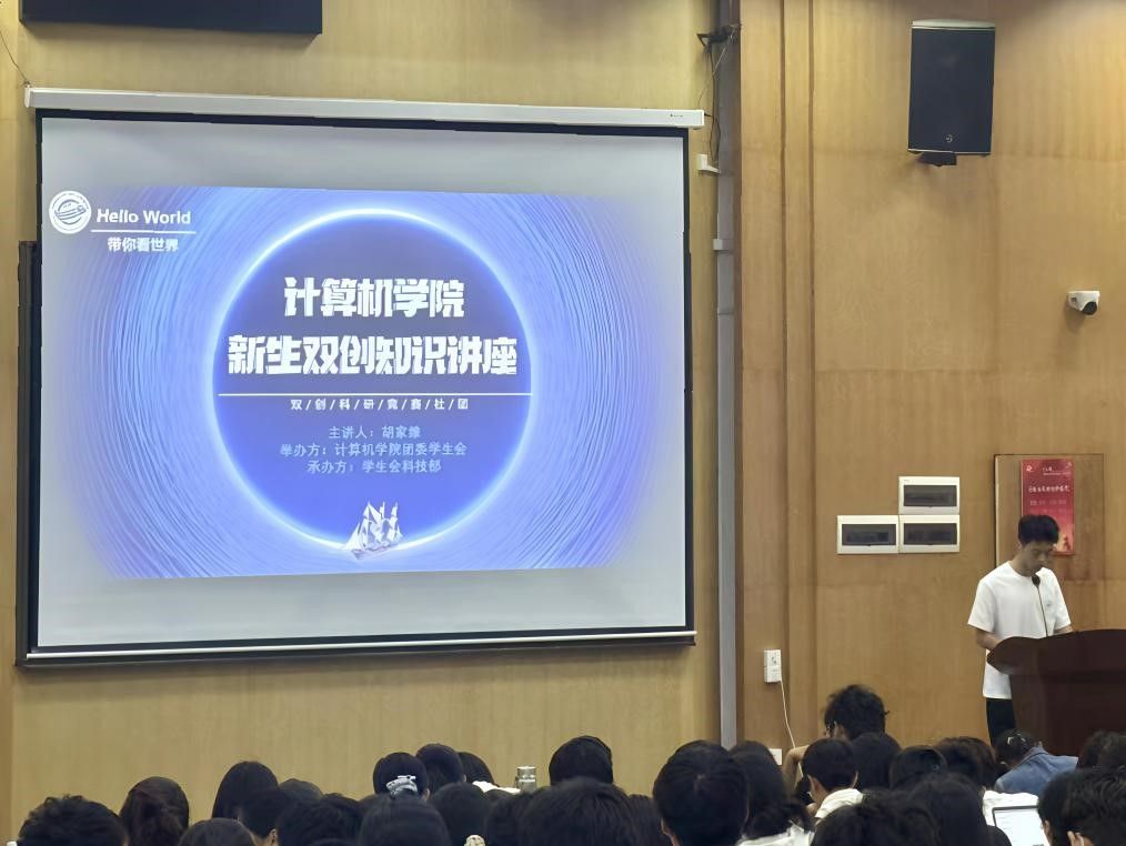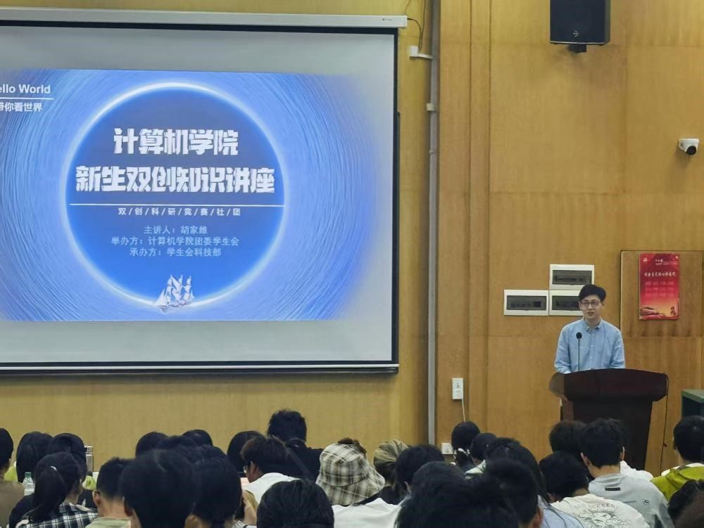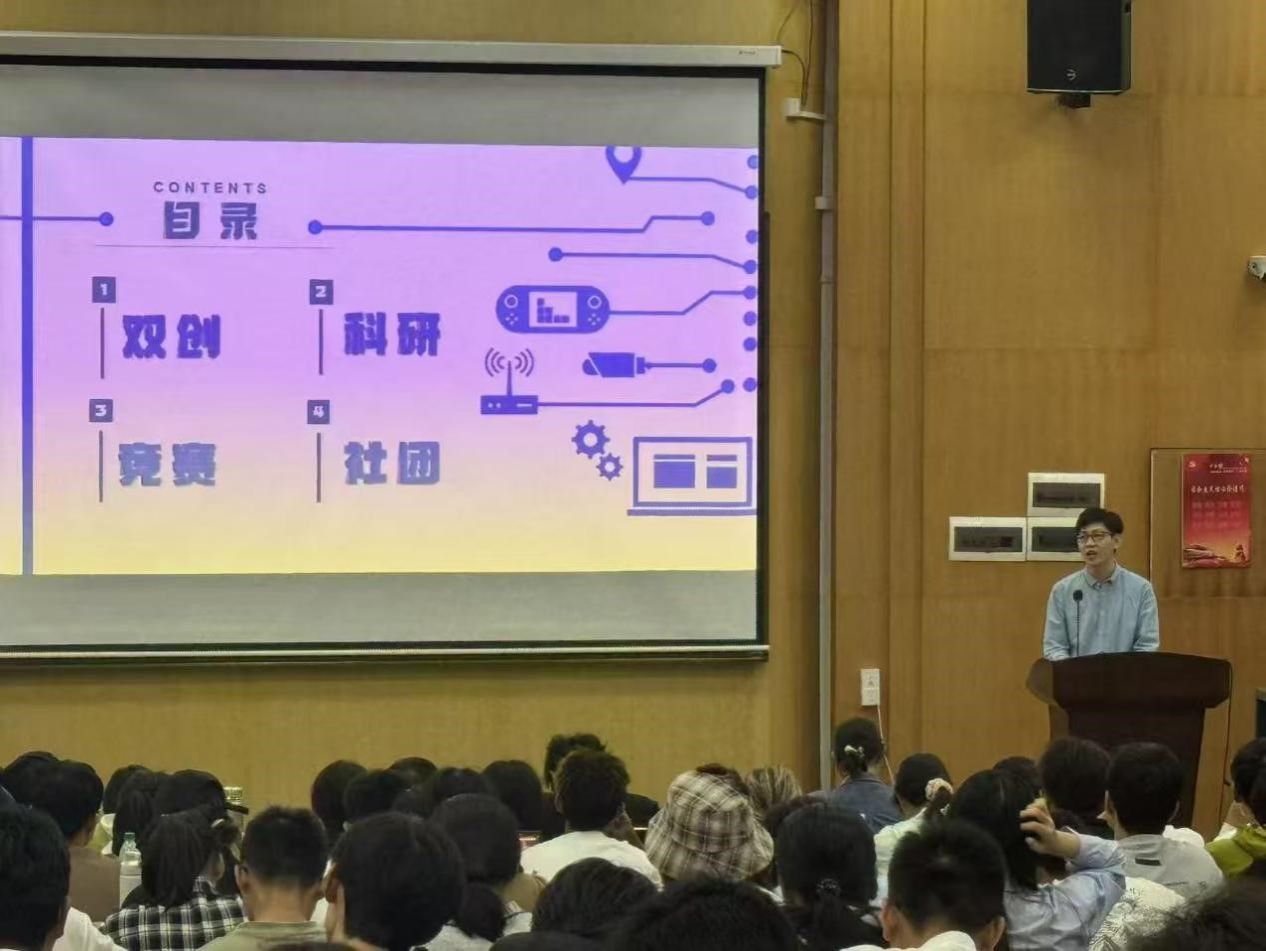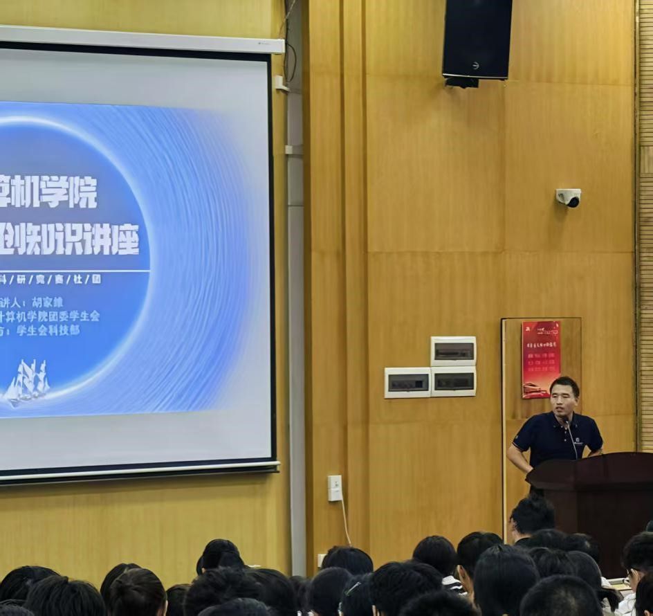 随后,科技部副部长胡家维同学围绕双创、科研、竞赛与社团活动四个维度,为在场同学带来详实的内容分享。他详细阐述了“双创”活动的相关内涵以及其对未来发展的潜在意义,并鼓励大一新生将科技论文报告会作为开启大学科研实践的第一站,引导他们积极参与到科技活动中去。此外,他还介绍了免费看a片 支持的多项科技竞赛,包括ACM程序设计竞赛、CTF网络攻防比赛等,并指出这些平台不仅为团队协作和自我展示提供了宝贵机会,还能锻炼同学们的实践能力与创新思维。最后,胡家维同学向大家介绍了ACM协会、网安协会、智能基座协会等科技类社团,鼓励新生在专注学业的同时,踊跃参与课外实践,实现学术交流、技能拓展与兴趣培养的全方面发展。