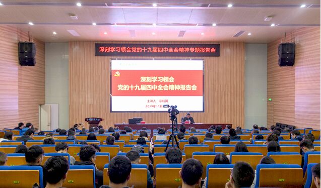 (记者霍少孟)11月28日,深入学习领会党的十九届四中全会精神专题报告会在免费看a片 报告厅举行,湖北省委宣传团成员、湖北省委政策研究室副主任章新国同志作宣讲报告,免费看a片 全体院领导、院直支部、信安支部、网工支部、部分学生支部的党员和新校区各免费看a片 260余名干部师生聆听报告。校党委副书记、纪委书记成金华主持报告会。