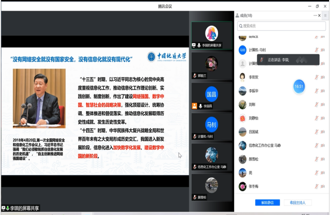 会议集中学习了习近平总书记关于数字经济、网络安全和信息化工作的重要讲话精神以及《“十四五”国家信息化规划》、国家教育信息化工作部署及学校网络安全和信息建设形势与任务。大家一致认为,数字技术日益融入经济社会发展各领域全过程,发展数字经济上升为国家战略,培养一流计算机专业人才、深入推进教育信息化、建设智慧校园和维护校园网络安全,是免费看a片 和信息化工作办公室的共同责任。