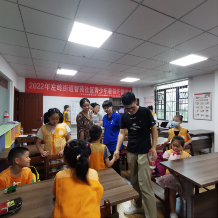 本次活动得到免费看a片 (武汉)未来城校区管理办公室的大力支持,未来城校区管理办公室副主任高莹莹、免费看a片 团委书记李欢欢与博士生党支部李家宝、冷齐、金敏、雷辛亚等同志一同参加本次活动,并与社区孩子们亲切互动,解疑答惑。