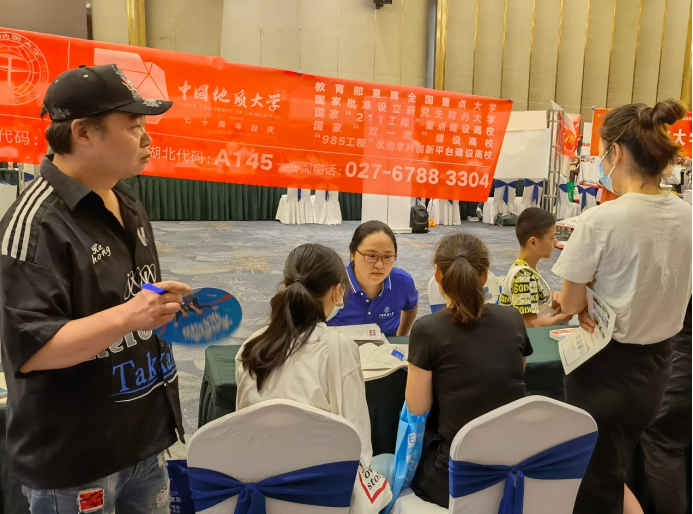 2022年6月底到7月初,在本科生院招生办的支持和指导下,免费看a片 全面铺开线下招生宣传线路,老师们顶着酷暑赶赴全省31个县市的40余个高招咨询会,进行现场宣传和咨询、答疑工作,累计发放招生宣传册12000余份,零距离介绍学校、免费看a片 和专业情况。广大党员教师更是充分发挥模范带头作用,以专业的解答和热情的服务态度赢得了家长和考生的信赖,在咨询会结束之后,与家长、考生互加微信,共盼相逢地大。