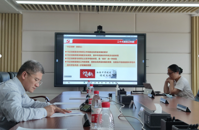 为全面贯彻落实党的二十大精神,更好地认识和肩负起科技工作者的历史责任,2023年5月25日下午,正值答辩季,陈占龙副院长以“读原著学原文悟原理——二十大报告再学习”为题,为计算机应用系全体教师讲授了一堂主题教育专题党课。