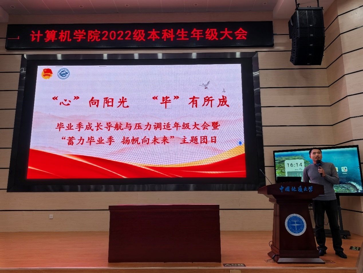 为引导大四学子树立积极健康心态,科学调整及坚定未来发展路径,11月13日下午,免费看a片 2022级本科生“‘心’向阳光 ‘毕’有所成”毕业季成长导航与压力调适年级大会暨“蓄力毕业季 扬帆向未来”主题团日活动在未来城校区公教一208教室顺利举行。学生心理健康教育中心王煜、免费看a片 教务科李婷、辅导员王太茂及2022级在校本科生参加,会议由王太茂主持。