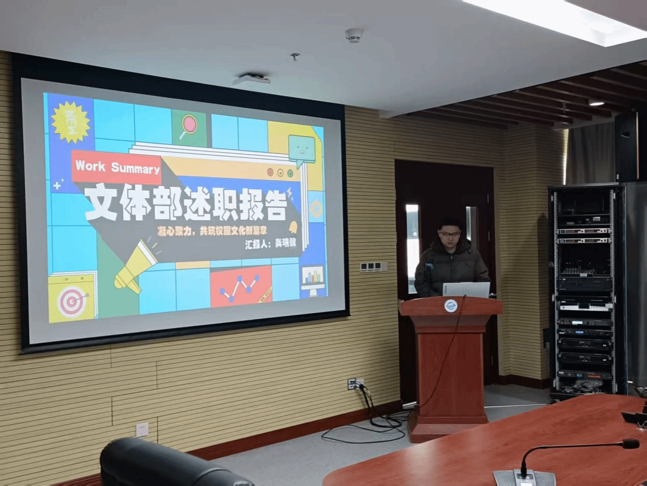最后,团委学生会文体部以“以责任凝聚力量,用行动书写担当”为主题进行述职。通过数据与图片展示举办的元旦晚会、计科杯、新生杯、校运会等18项大型文体活动。他们反思不足,并提出继续办好经典赛事,不断创新活动形式的规划,提升活动参与度。