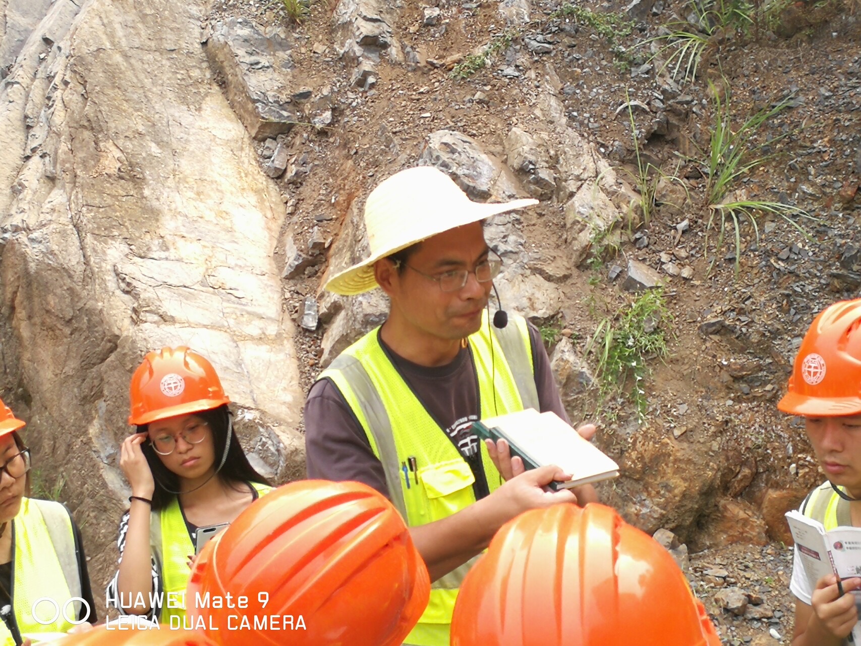 在教学过程中,每天都跟随队伍一起出发,除了负责好后勤、安全等事宜外,在教学路线、教学点上,与带班老师一起配合、结合专业建设需要讲授地质知识,学生都说:听郭老师、汪老师、张老师三位像讲故事、讲相声一样就让我们学习到了知识。
