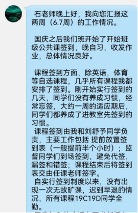 他指导班级制定了每堂课班级考勤制度和每周三次集体晚自习制度。在课堂督促学,在课余时间集体学。