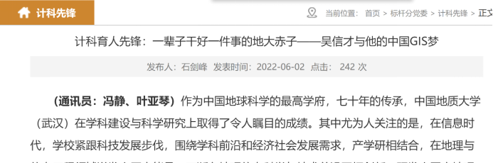 支部定期推举典型人物事迹材料,从师德师风、思政教育等方面撰写和宣传材料。目前已推出计科育人先锋吴信才和邢廷炎老师的通讯稿,如图5所示,已完成优秀校友通讯稿两篇,后期将持续推进。