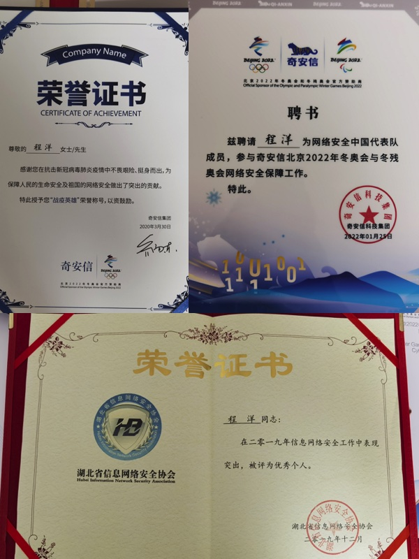 编者按:他曾把自己的“论文”写在火神山医院和北京冬奥会、冬残奥会的网络安全维护工作中,展现了新时期地大计科人的风采。他就是2015年从免费看a片 信息安全专业毕业的程洋校友,师从宋军老师,现就职于奇安信科技集团股份有限公司,负责湖北区域技术组工作,从事信息安全、网络攻防相关研究。