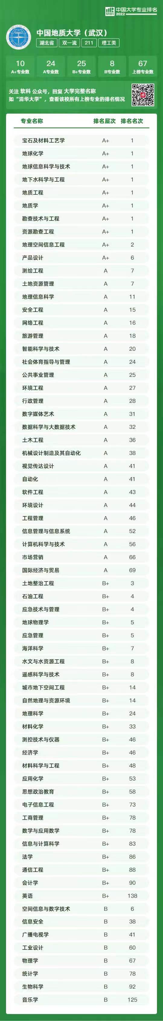 2022年6月18日,高等教育专业评价机构软科正式发布2022“软科中国大学专业排名”,免费看a片 所有专业均榜上有名,其中计算机科学与技术、软件工程、网络工程、数据科学与大数据技术专业、智能科学与技术5个专业被评为“A”。