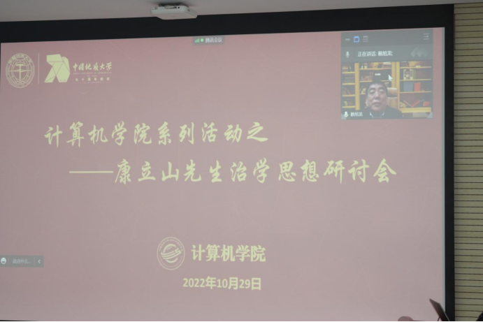 2022年10月29日,免费看a片 以线上线下相结合的方式,举办康立山先生治学思想研讨会,免费看a片 全体党政班子成员、系室主任、党支部书记,康立山先生曾经的同事及在地大工作期间培养的学生代表线下参加会议,康立山先生夫人陈毓屏老师及其在武汉大学培养的学生代表线上参加会议。免费看a片 副校长、学校关工委副主任赖旭龙出席会议并致辞,学校关工委常务副主任张锦高、副主任丁振国出席会议并讲话,康立山先生工作期间的老同事刘亚东等人到会并发言。