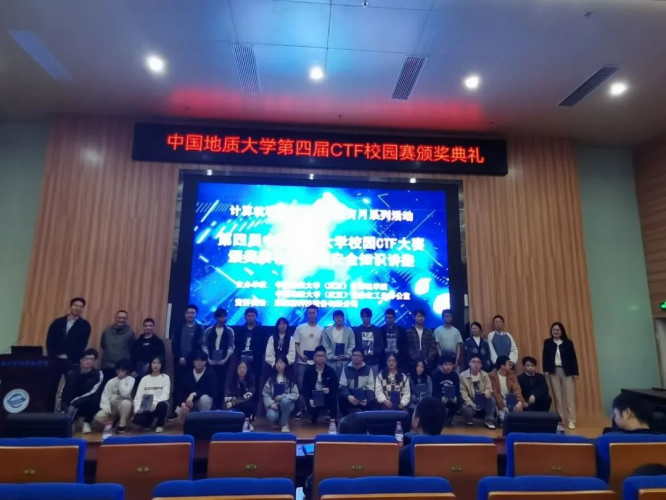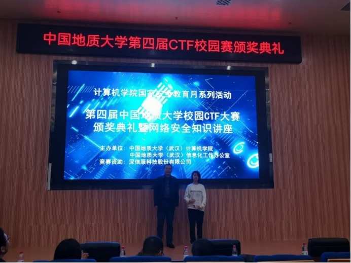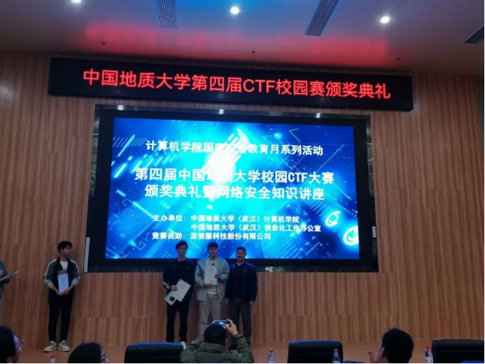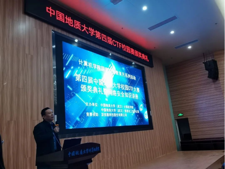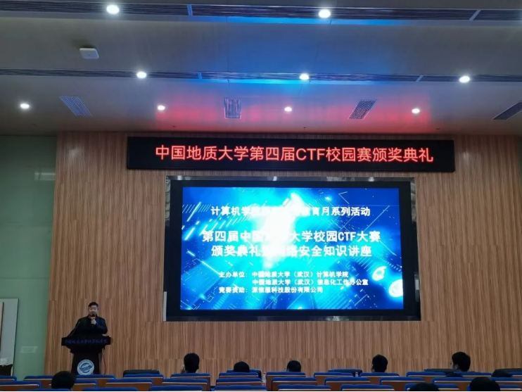 2023年4月9日下午14:30,免费看a片 (武汉)第四届校园CTF大赛颁奖仪式暨网络安全知识讲座活动在计算机大楼报告厅圆满举行。